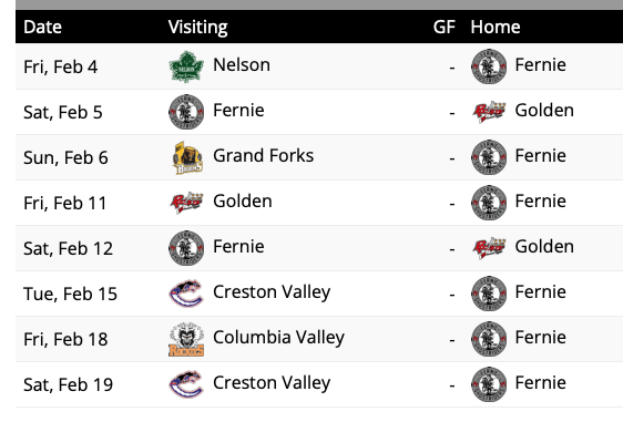 But so do the Rockies They only play each other one time in Invermere Feb 11.